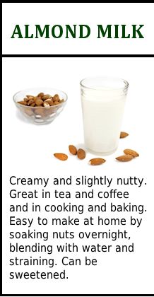 1 cup = 60 Calories / 2.5g Fat / 1g Protein / 7g Sugar / 45% Calcium / 25% Vit D